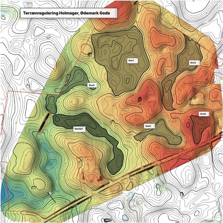 Lavningernes individuelle og Holmager markens samlede terrænreguleringspotentiale er beregnet og leveret som input til lodsejerens myndighedsansøgning.