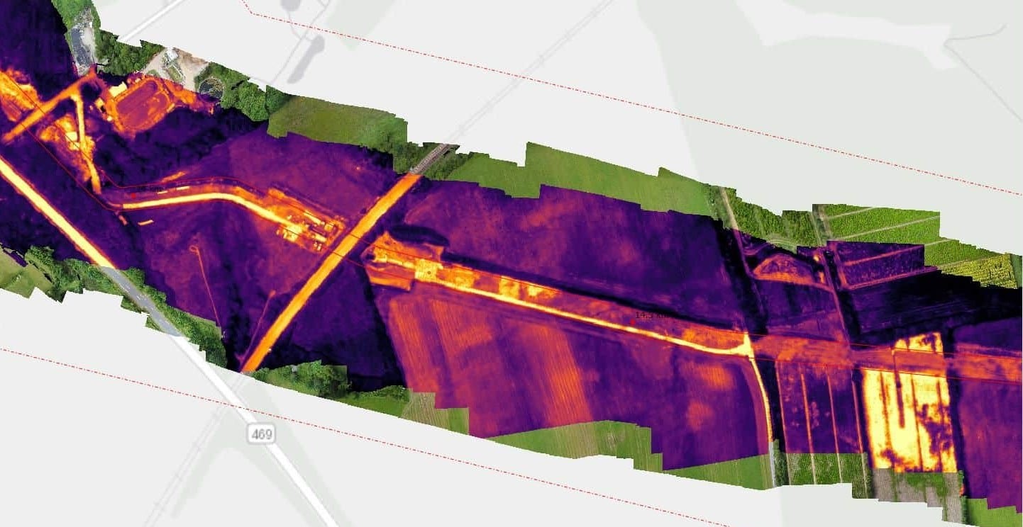 Dokumentationsopgave vedr. kortlægning af dræn udført for Energinet i forbindelse med etableringen af naturgasledningen Baltic Pipe, Omfang på mere end 30 flyvninger fordelt over 42 km strækning i Jylland med anvendelse af en fixed-winged drone med RTK.